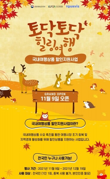 여행 할인권은 11월 9일부터 12월 19일까지 운영되는 여행상품 중에 선택해 적용할 수 있다.