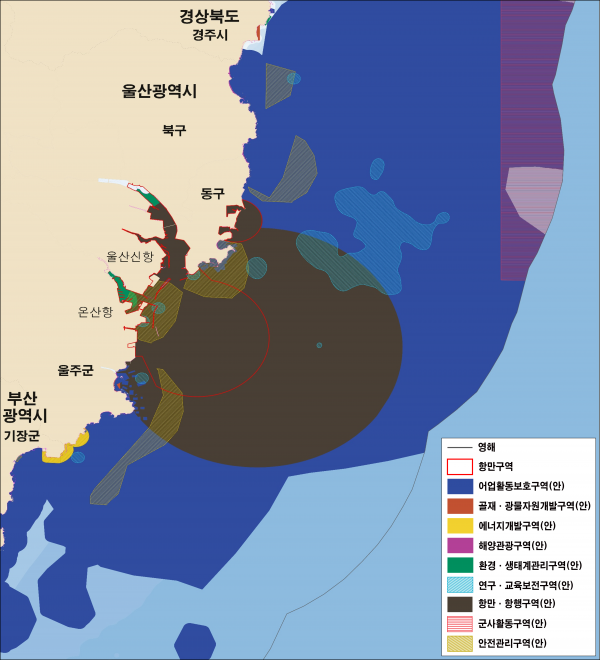 이번 울산 해양공간관리계획은 울산지역의 특성을 고려해 항만·항행구역과 어업활동보호구역을 중심으로 마련됐다.