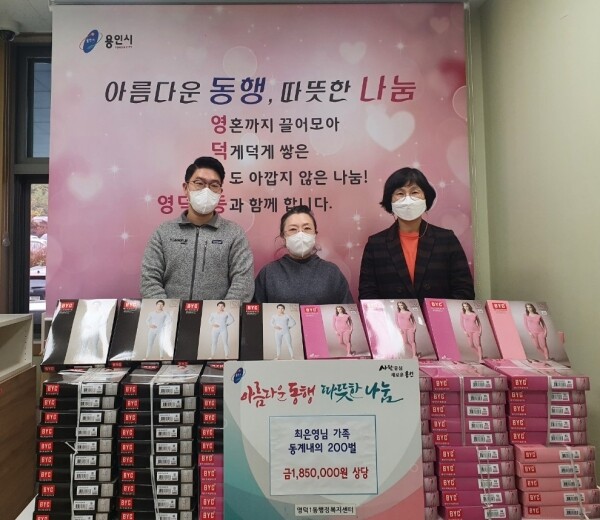 11일 용인시에 따르면 기흥구 영덕1동에 사는 최은영씨 가족이 지난 9일 어려운 이웃을 위해 써 달라며 동계 내의 200벌을 기탁했다.