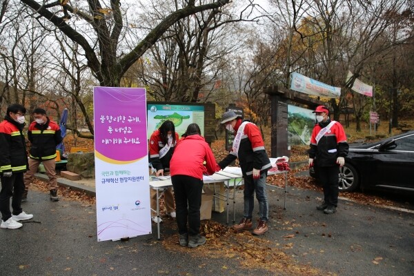 산에 찾아오는 사람들이 늘어나면서 어느 때보다 산불에 대한 위험이 높아지는 시기로 이날 캠페인 참여자들은 탐방로를 따라 인화 물질을 제거하는 산림정화 활동과 방문객에게 산불조심 홍보물 배부하는 등 산불예방 활동을 펼쳤다.