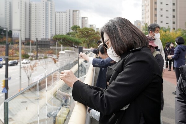 은 시장은 현장에서 “환경부에 따르면 연간 약 800만 마리의 야생조류가 건물 유리창과 투명 방음벽에 부딪혀 다치거나 죽는다고 한다 성남시도 최근 2년간 말똥가리, 상모솔새, 박새 등 70여 마리의 새들이 투명창에 충돌한 사례가 있다”며 “새들은 일정 크기 이하 공간은 통과하려 하지 않는다고 한다 이렇게 ‘5x10’점자 필름을 부착하는 것만으로도 부딪혀 죽는 새가 크게 줄어든다”고 말했다.