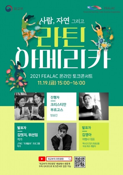 이번 토크콘서트는 내년 중남미 15개국과 수교 60주년을 맞아 중남미에 대한 우리 국민들의 관심과 이해를 높이는 기회가 될 것으로 기대되며 외교부는 앞으로도 동아시아와 중남미 지역의 교류를 확대하고 우리 국민들의 중남미에 대한 이해를 증진시킬 수 있도록 계속해서 노력해 나가고자 한다.