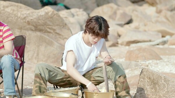 NCT 127은 낙지, 물고기, 고둥 등 직접 잡은 신선한 해산물로 해변에서 즉석요리를 선보인다.