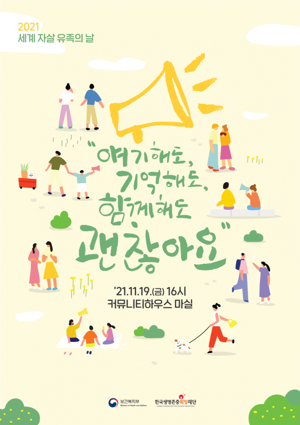 한편 세계 자살 유족의 날을 맞아 자살 유족 자조 모임의 긍정적 영향에 대한 인식 제고를 위해 자조 모임 경험을 주제로 수기 공모전을 개최했다.
