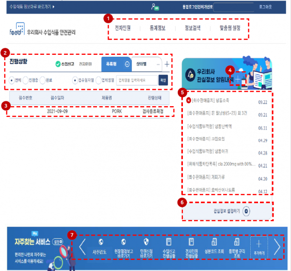 주요 개편 내용은 ‘우리회사 수입식품 안전관리 채널’ 신설 우리회사 맞춤형 통계정보 제공 관심정보 설정·배달이다.