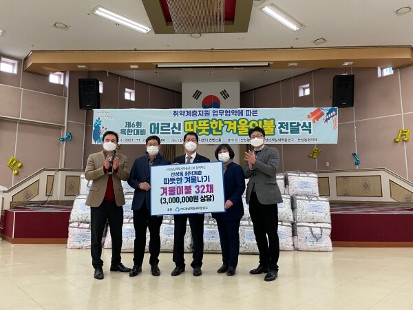 김중옥 MG성남제일새마을금고 이사장은 “이번 지원은 수요자가 필요한 물품을 지원하는 맞춤형 복지로 그 의미가 더 크다”며 “겨울이불이 추운 날씨에도 폐지를 주우러 다니시는 어르신들과 저소득 취약계층을 포근히 감싸안는 따뜻한 안식처가 되었으면 좋겠다”고 말했다.