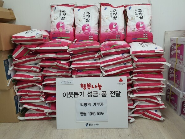 읍은 이날 기탁받은 쌀을 관내 장애인, 한부모가정, 조손가정 등 취약계층 50가구에 전달키로 했다.