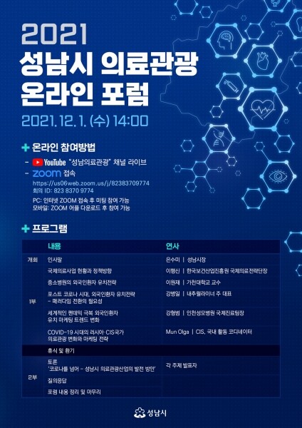 이번 온라인 포럼은 유튜브 ‘성남의료관광’ 채널과 줌으로 생중계해 시민 누구나 시청할 수 있다.