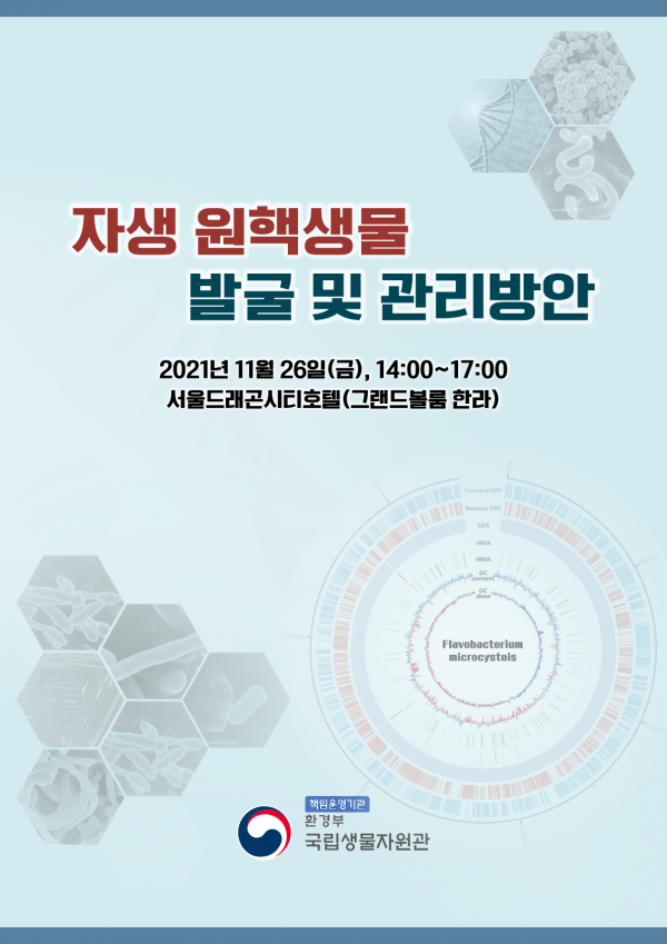 환경부 소속 국립생물자원관은 자생 세균 관리 및 연구 강화 방안을 마련하기 위해 11월 26일 오후 서울드래곤시티호텔에서 민관 전문가들이 참여하는 학술회를 개최한다.