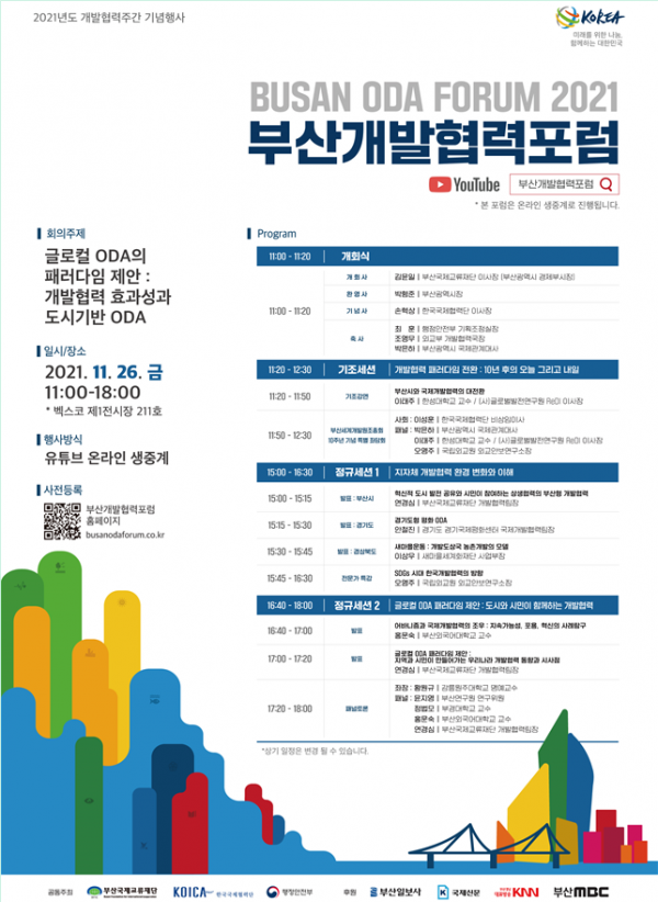 이번 포럼은 ‘글로컬 ODA 패러다임 제안 : 개발협력 효과성과 도시기반 ODA’라는 주제로 개최된다.