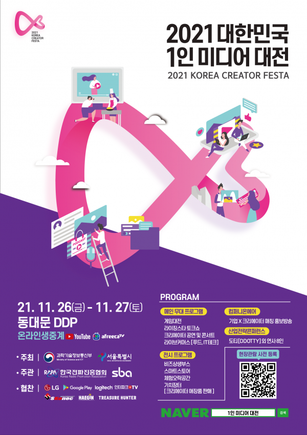 ‘2021 대한민국 1인 미디어 대전’의 세부 정보는 공식 홈페이지에서 확인할 수 있으며 동대문디자인플라자 현장 참여 및 아프리카TV 및 유튜브 ‘대한민국 1인 미디어 대전’ 채널 시청을 통해 온라인으로 참여할 수 있다.