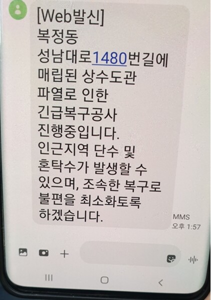성남시 물공급과 관계자는 “수돗물은 우리 일상생활과 가장 밀접한 필수 자원”이며 “단수 상황 발생 때 신속히 공지해 시민 불편을 최소화하려고 전달력이 빠른 문자 알림 서비스를 도입했다”고 말했다.