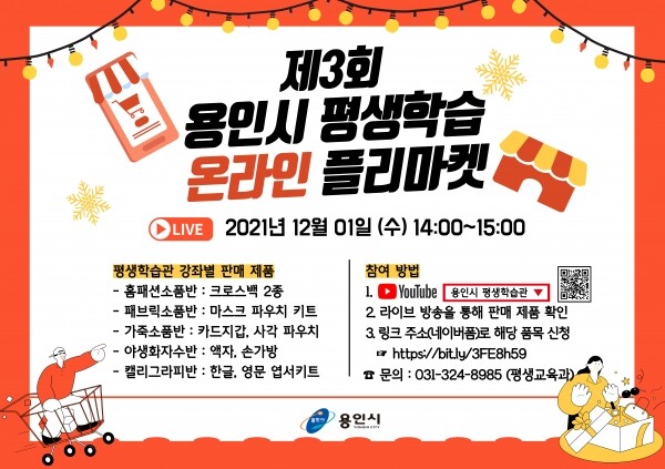시 관계자는 “평생학습에 대한 시민들의 관심과 참여를 높이기 위해 지난 2018년부터 플리마켓을 개최하고 있다 지난해는 코로나19로 행사를 열지 못해 올해 라이브커머스라는 새로운 방식으로 플리마켓을 준비했다”며 “앞으로도 여려 방법으로 시민들을 만나 평생학습을 홍보해 나가겠다”고 말했다.