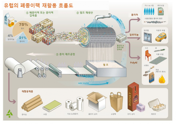 종이팩은 고품질의 펄프로 만들어지기 때문에 화장지의 좋은 원료가 될 수 있지만, 재활용률은 16%에 불과하다.