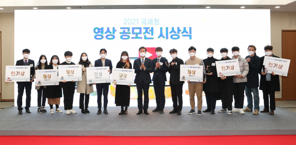 국세청은 12.3. 서울지방국세청 5층 회의실에서 김대지 국세청장과 수상자들이 참석한 가운데 마스크 착용 등 단계적 일상 회복 조치 시행에 따른 방역지침을 준수해‘2021 국세청 영상 공모전’ 시상식을 개최했다.