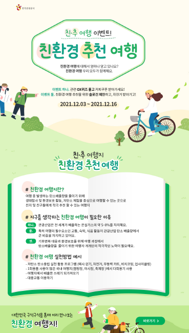 친환경 추천 여행지 홍보와 대국민 인식 제고를 위한 온라인 이벤트도 실시되고 있다.