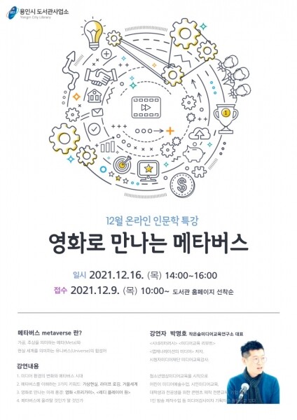 시 도서관사업소 관계자는 “최근 화두가 되고 있는 메타버스에 대해 쉽게 알아볼 수 있는 강연을 준비했다”며 “메타버스에 관심이 있는 시민들에게 좋은 기회가 되기를 바란다”고 말했다.