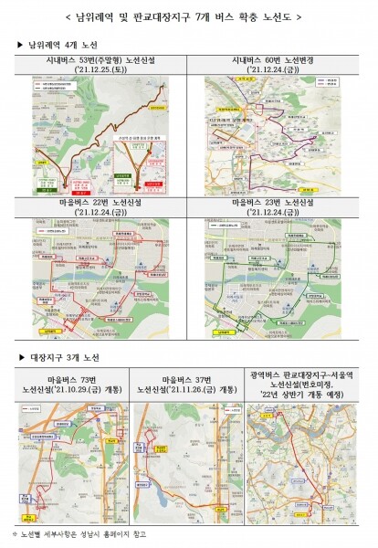 판교대장지구에는 지난달 추가 입주한 1033가구 입주민을 위한 3개 버스노선을 신설 또는 개통한다.