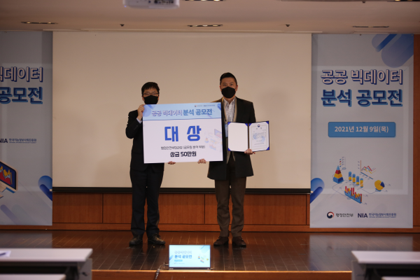 ‘공공 빅데이터를 활용한 사회문제 해결’을 주제로 열린 공모전 본선은 2021년 9월 6일부터 10월 15일까지 공모를 받아, 3개월여의 치열한 예선을 거쳐 우수사례로 인정받은 5개 분야 17개팀이 12월 9일 본선에서 온라인 생중계 방식으로 발표를 진행했고 6명의 심사위원과 100명의 청중평가단이 최종순위를 결정했다.