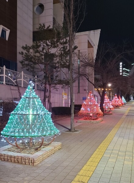 동은 코로나19로 지친 주민들에게 희망과 위로를 건네고자 청사 앞 인도에 2m 크기의 트리조명을 설치했다.