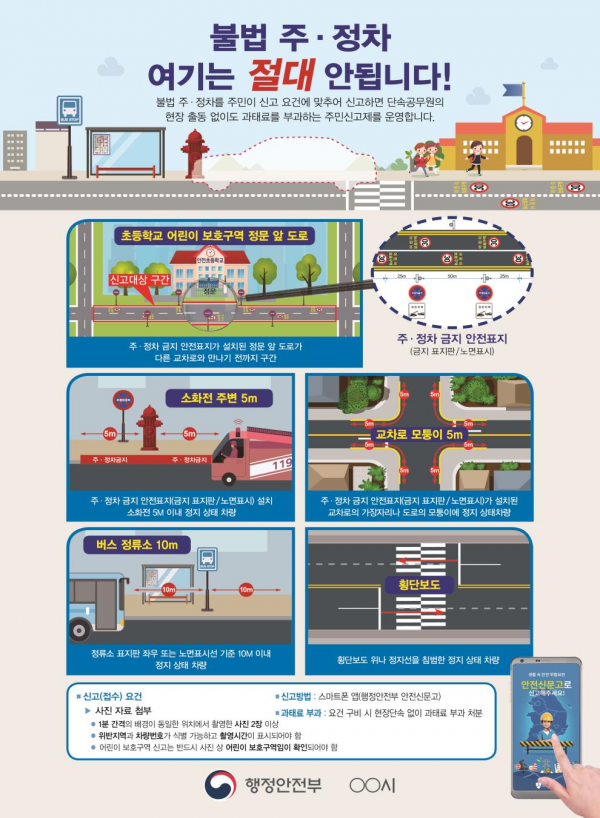 한편 전국 지자체에서도 관련 홍보물을 개별 제작·배포하는 등 5대 불법주정차 구역 주민신고제 등 인식 제고를 위해 홍보에 동참할 계획이라고 전했다.