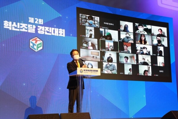 ‘사진첨부’ 이번 경진대회는 방역패스를 적용해 입장이 관리됐으며 코로나19 상황을 고려해 현장 참석 인원을 최소화하면서도 혁신조달 성과 공유와 분위기 확산을 위해 지자체 등 공공기관은 온라인으로 참여했다.