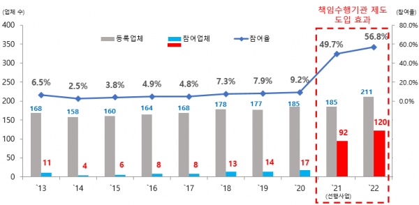 그 결과, 전국 211개 지적측량 등록업체 중 120개의 업체가 2022년 사업에 참여 신청해 최종 102개의 업체가 선정되었는데, 이는 매년 평균 10개의 업체가 참여하였던 점을 감안하면 약 10배 이상 증가한 수치이다.
