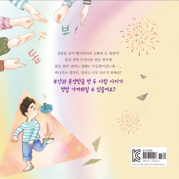 아울러 이 책 부록으로 ‘놀이명 쓰기’, ‘호칭과 촌수 계산하기’, ‘지역음식 및 우리말과 같은 의미의 북한말 연결하기’ 등 동화 내용과 관련 있는 ‘독후 활동’도 추가해 평화·통일에 대해 놀이로써 쉽고 재미있게 접근할 수 있도록 했다.