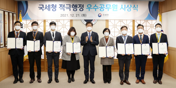 이날 시상식에서 국세청장은, “납세자의 숨은 불편을 찾아 해소하기 위해 능동적으로 업무를 수행해준 우수공무원들에게 감사드린다”며 “앞으로도 적극행정이 국세청의 조직문화로 확고하게 자리매김할 수 있도록 지속 노력해 줄 것”을 부탁했다.