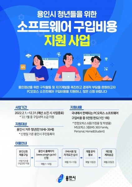 시 관계자는 “많은 청년들이 정품 소프트웨어 구입에 경제적 부담을 느끼고 있어 구입비 일부를 지원하게 됐다”며 “관내 청년들이 안정적으로 자기 계발을 하고 구직활동을 하는 데 보탬이 되길 바란다”고 말했다.