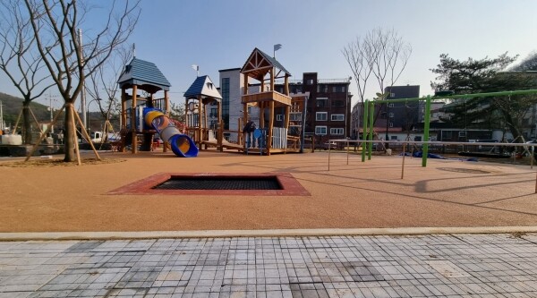 공원 조성에는 총 13억 8000만원이 투입됐으며 1,234㎡ 규모로 어린이들이 좋아하는 트램펄린, 무장애 조합놀이대, 그네 등 놀이공간을 새로 조성했다.