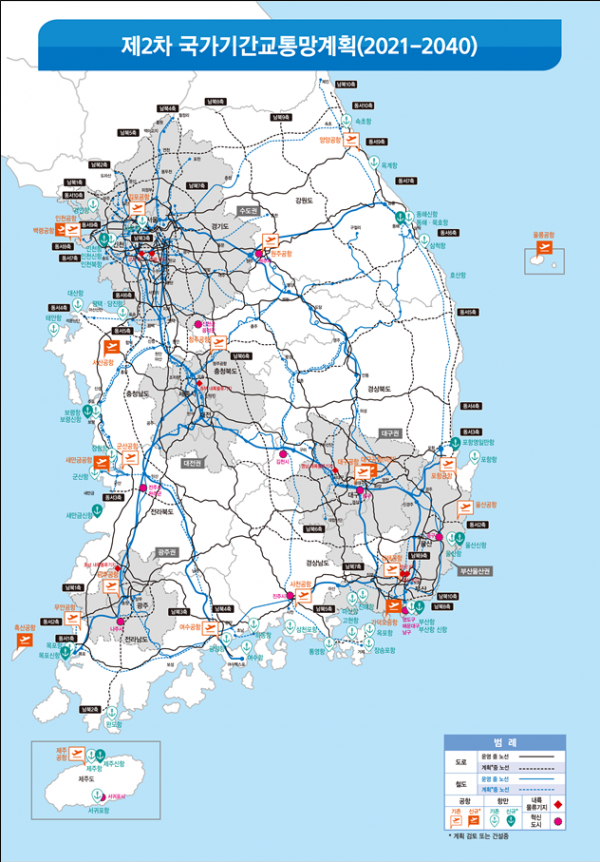 전국 대부분의 도시를 2시간대에 이동할 수 있도록 지역간 고속·광역급행 철도망을 연결하고 국가 간선도로망 계획을 과거 에서 으로 개편해 지역 간 고속도로망과 광역권 순환방사형 고속망을 완성한다.