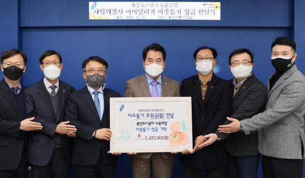 이날 용인시청에서 열린 기탁식에는 용인도시공사 임원진들이 참석해 직원들이 십시일반 모은 성금 547만 2900원을 기탁했다.