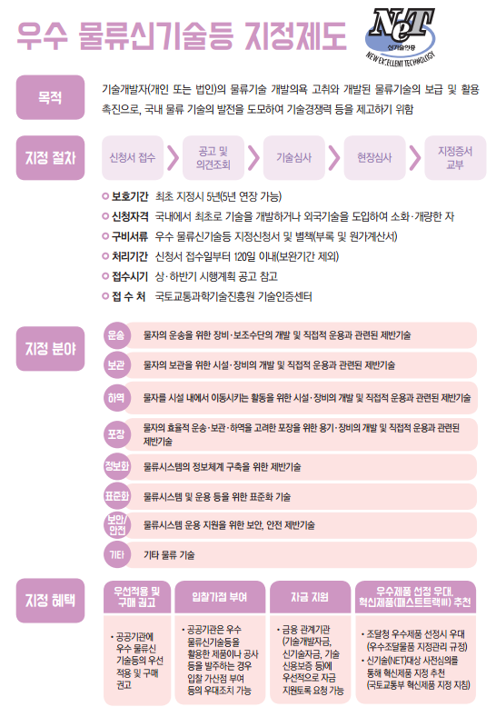 신기술로 지정되면, 기술개발자금 등 우선 지원, 공공기관 우선 적용 및 구매 권고 입찰 시 가점 부여 등의 다양한 혜택을 받게 된다.