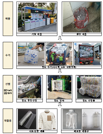 환경부는 2020년부터 순차적으로 공동주택과 단독주택에서 투명페트병 별도 배출제도를 시행하면서 별도의 선별 시설을 확충하는 등 공공선별장 고도화를 지속적으로 추진하고 있다.