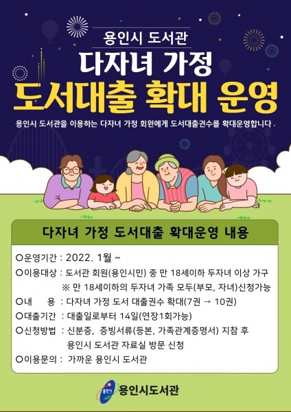 다자녀 가정의 가족 구성원 모두 다자녀 회원으로 가입할 수 있으며 대출 권수도 각기 적용된다.