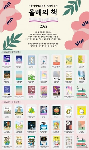시 관계자는 “시민들이 선정한 올해의 책을 활용해 저자 강연, 독서모임, 독서교실 등 다양한 프로그램을 연계해 운영할 예정”이며 “다 함께 책 읽는 용인을 만들 수 있도록 적극적인 참여를 바란다”고 말했다.