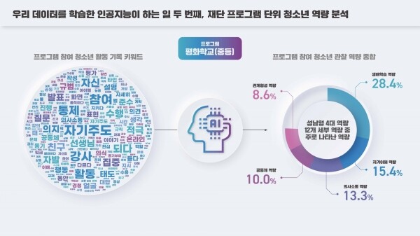 한편 성남시청소년재단 성남형교육지원단은 ‘인공지능 학습용 데이터 구축’사업으로 개발된 역량분석 인공지능을 2022년 상반기 시범 운영해 성남시 청소년들에게 역량 리포트를 제공하고 2023년까지 역량 진단 기반 성남시 청소년 활동·교육 온라인 정보시스템을 구축할 예정이라고 밝혔다.