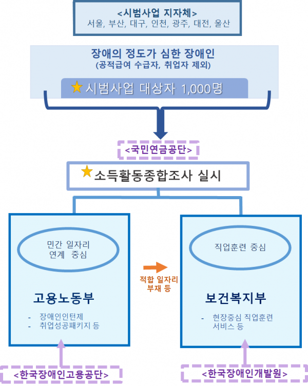 이번 시범사업은 공적이전소득 및 근로소득이 없는 중증장애인들의 소득활동 여건을 심층 분석하고 지역사회 내 일자리·훈련 기반 확대 등 정책적 지원 방안을 모색하기 위한 것으로 시범사업 참여를 희망하는 해당 중증장애인분들은 7개 광역시의 거주지 동주민센터를 통해 신청할 수 있다.