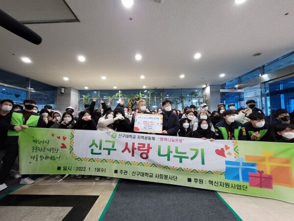 신구대학교에서는 금광2동 행정복지센터뿐만 아니라 학교 인근지역에 매년 어려운 이웃을 위해 후원 물품을 전달하고 있으며 학교와는 별개로 학과 및 부속유치원 등에서도 꾸준히 복지 소외계층을 위해 깊은 관심을 기울이며 각종 후원과 사랑 나누기 운동에 동참하고 있다.
