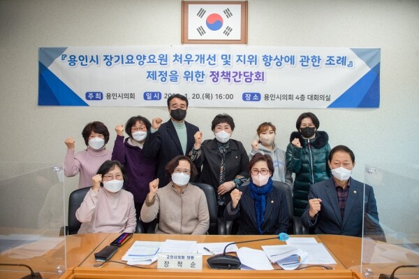 이날 간담회에는 장정순 의원의 진행으로 박남숙, 윤재영, 명지선, 전자영 의원과 김영범 전국요양서비스노동조합 용인지회장, 이경자 용인요양보호사협회장, 김숙희, 이순희, 이정숙 무지개실버케어스 요양보호사, 용인시 노인복지과 관계자 등이 참석했다.