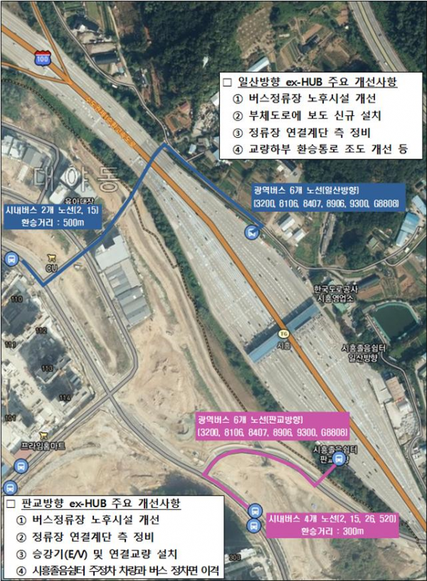 이에 따라 기존 환승정류장을 철거하고 정류장 안내기, 냉난방시설 등의 시설을 갖춘 스마트 환승정류장으로 새롭게 설치했으며 고속도로 쉼터와 혼재되어 있던 환승정류장을 구조적으로 분리하고 진입로 정비, 엘리베이터 설치 등 접근시설도 정비해 교통사고 예방과 이용시민들의 안전도 확보할 수 있게 됐다.