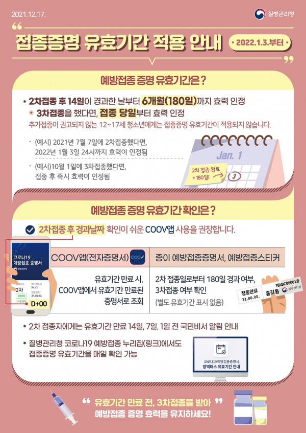 이에 정부는 2차접종후 3개월이 경과한 18세의 신속한 3차 접종을 독려하고 백신접종 이상반응 청소년 의료비 지원 실시 등 12-17세 청소년 접종 독려를 지속한다.