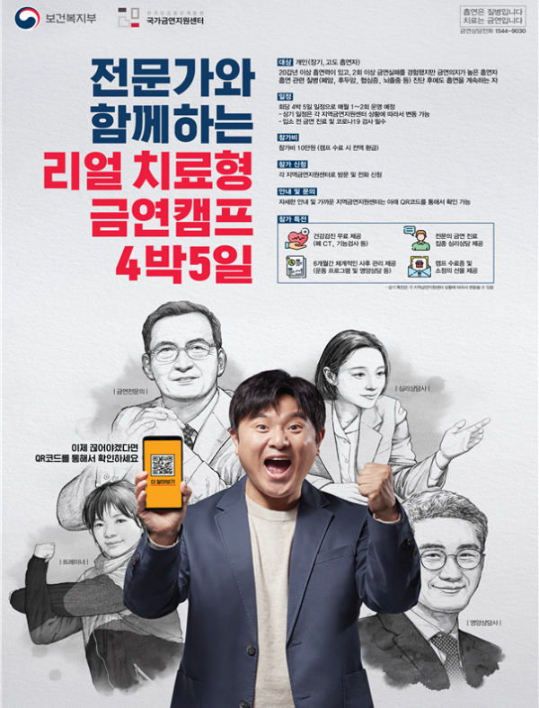 스스로 의지만으로 금연에 성공하기 어려운 중증·고도흡연자, 반복 재흡연자, 금연이 시급한 급·만성질환자 등을 대상으로 운영되는 집중 치료형 프로그램인 금연캠프의 4주 성공률은 70~80%에 이른다.