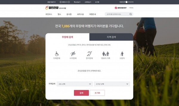 아울러 장애인·고령자·영유아 동반가족 등 수요자 유형별 무장애 추천코스, 7천 5백 건 이상의 무장애 DB를 제공하고 있다.