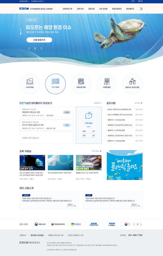 온라인플랫폼은 코로나19 확산세가 지속되고 있는 점을 감안해 해양환경교육에 대한 접근성을 높이는 비대면 교육 수단을 마련하기 위해 구축됐다.