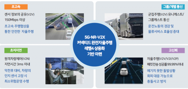 이는 군집주행, 원격주행 등 한층 고도화된 자율주행 서비스를 구현하는 데 필요한 기술이며 세계 최초로 개발 및 실증을 목표로 한다는 점에서 향후, 우리나라가 세계 자율주행 차량통신 기술을 선도할 것으로 기대된다.