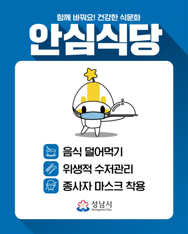 성남시 관계자는 “이번 안심식당 지정 확산을 통해 외식업주와 소비자 모두 식사문화에 대한 인식이 제고될 것이며 나아가 안전을 기반으로한 코로나19 감염을 예방할 수 있는 식사문화를 조성할 수 있을 것”이라고 말했다.