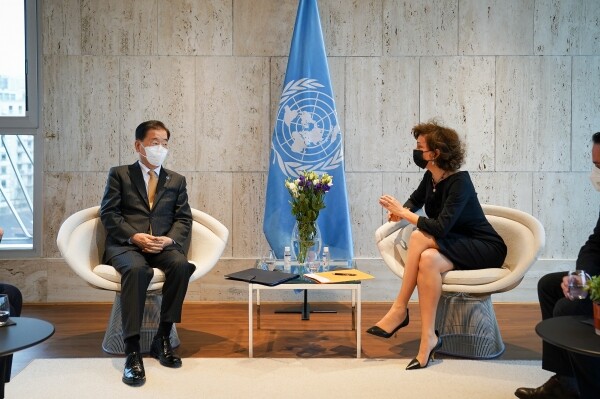한편 정 장관은 유네스코 세계유산 현안 관련 일본이 또 다른 한국인 강제노역 현장인‘사도광산’을 세계유산으로 등재 신청한데 대해 강한 우려를 전달하고 2015년‘일본 근대산업시설’후속 조치부터 충실히 이행될 수 있도록 사무총장의 각별한 관심과 협조를 당부했다.