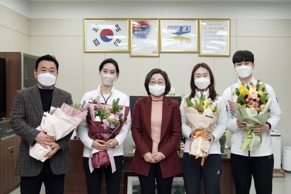 은 시장은 최민정 선수와 김민석 선수, 김현영 선수에게 꽃다발을 건네며 “진심으로 축하드린다 대한민국의 전체 메달 9개 중 4개를 성남시청 빙상팀이 가져왔다 여러분이 있음은 우리 성남의 행운이다 코로나19로 지친 시민들에게 위로와 희망이 됐다 93만 성남시민을 대표해 정말 감사드린다”고 축하와 감사를 전했다.